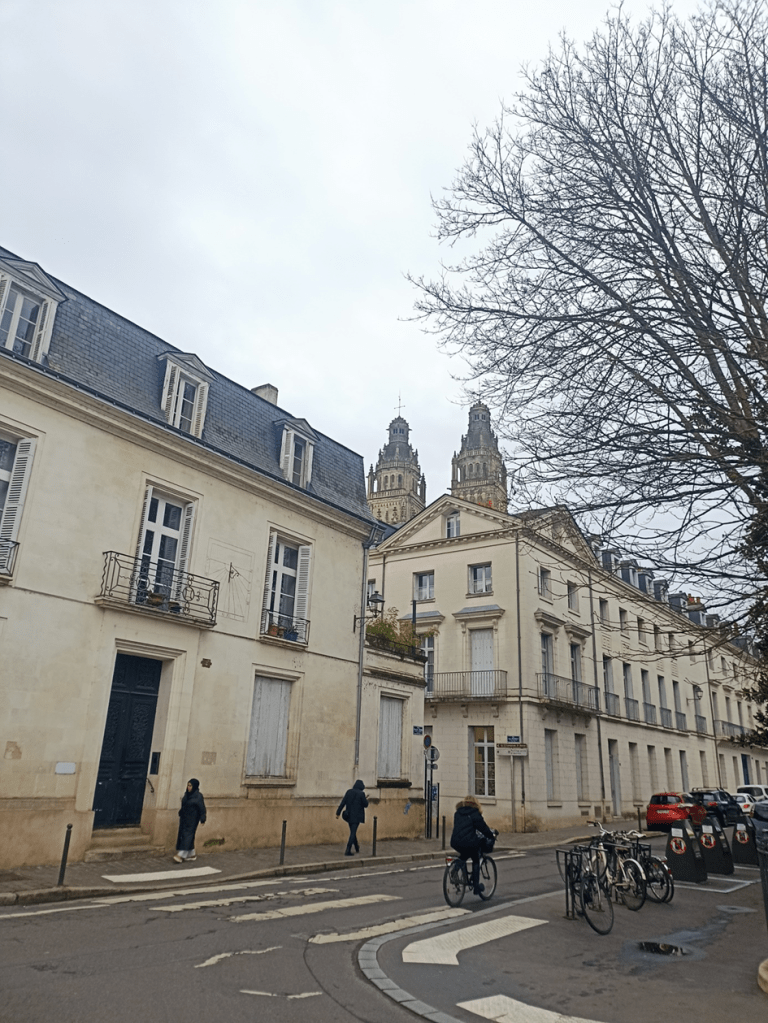 Angle de la place François Sicard, d’où l’on aperçoit les tours clochers de la cathédrale Saint Gatien.