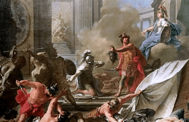Jean-Marc Nattier, Persée, assisté par Minerve, pétrifie Phinée, 1718, huile sur toile, 113,5 cm de hauteur x 146 cm de largeur, Musée des Beaux-Arts de Tours, propriété de la commune depuis un transfert de l’État en 2010.